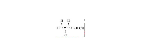 где «П» – потребность, «И» – интерес, «Ц» – цель, «С» – стимул, «У» – установка, «П (Д)» – поведение (деятельность) личности.