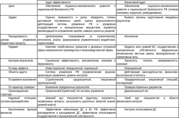 Для наглядности отличия аудита эффективности от традиционного финансового аудита можно отразить в виде таблицы следующим образом.