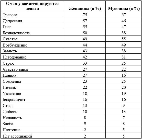 Определенный интерес представляют сведения об эмоциональном отношении мужчин и женщин к деньгам (см. таблицу).