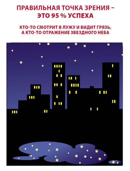 Вокруг нас безграничное количество возможностей, большую часть из которых нам никогда не суждено увидеть. А те возможности, которые нам открыты, мы видим благодаря правильной точке зрения и настроенности на их восприятие.