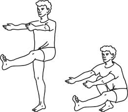 Слегка согнув обе ноги для равновесия, опуститься на заднюю ногу и выдвинуть колено вперед, удерживая пятку на полу.