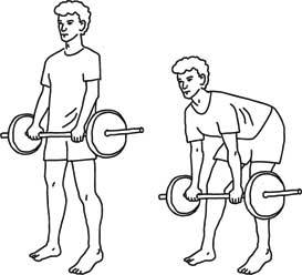 При правильном выполнении вы почувствуете напряжение в мышцах задней поверхности ног. Если нет штанги, можно использовать гантели или любой тяжелый предмет.