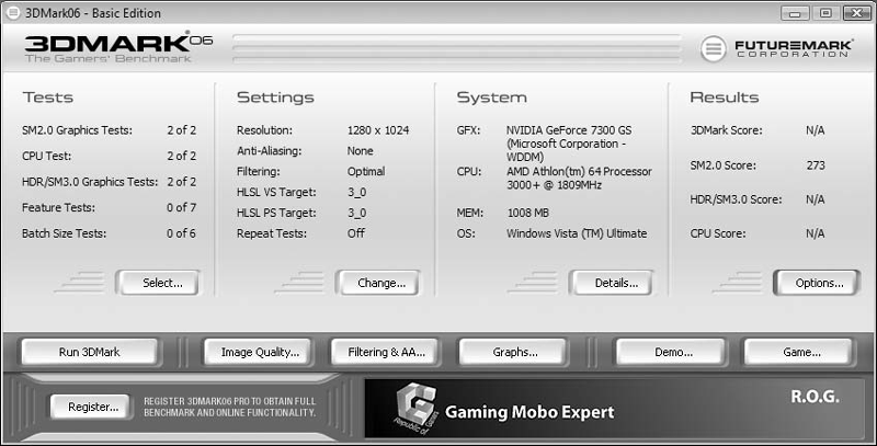 Рис. 1.5. Внешний вид программы 3DMark 2006