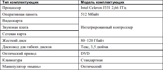 Таблица 1.1. Конфигурация офисного компьютера