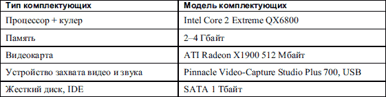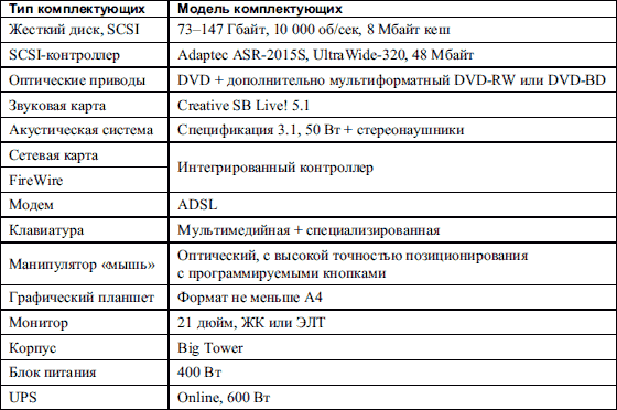 Таблица 1.4. Конфигурация компьютера для работы с графикой и обработки видео