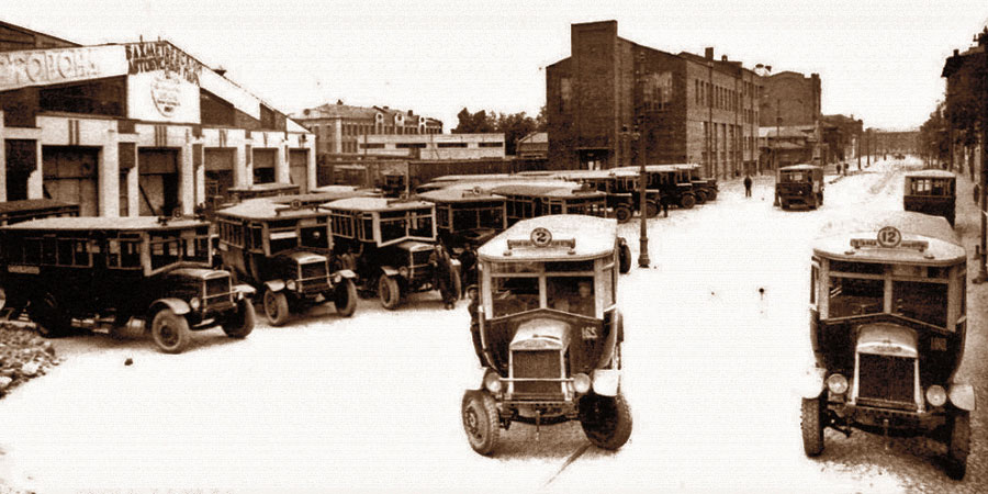 Автобусы Leyland в Бахметьевском автобусном парке. Москва первая в 1924 году закупила в Великобритании партию этих автобусов