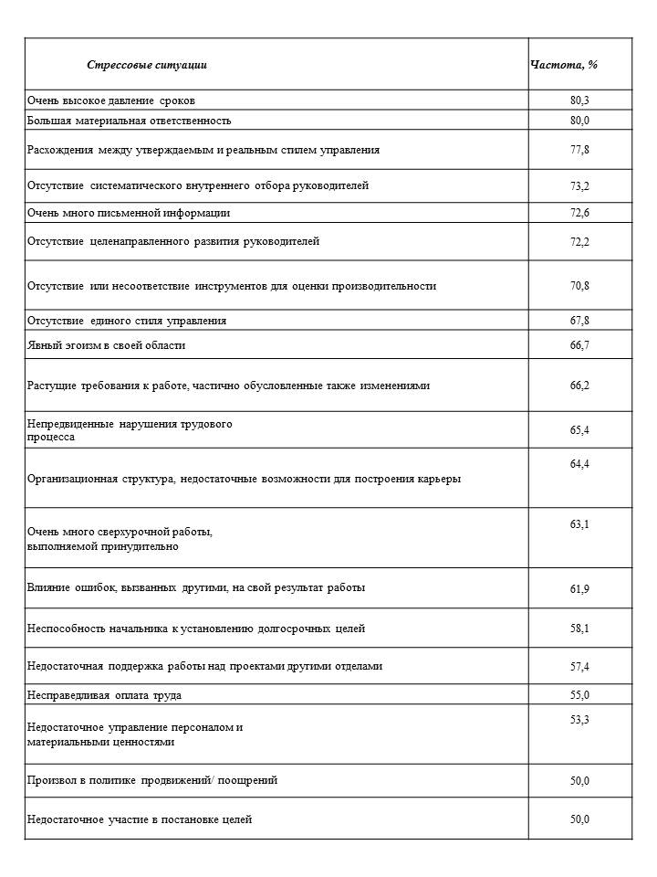 Установлено, что благоприятную почву для развития конфликтов создают стрессовые ситуации. Они повышают «эмоциональный градус» взаимодействий, в результате чего противоречия и проблемы гораздо легче перерастают в инциденты и конфликты. В табл. 1 приведены 20 наиболее часто упоминаемых работниками причин стрессовых ситуаций, порождающих конфликты1.