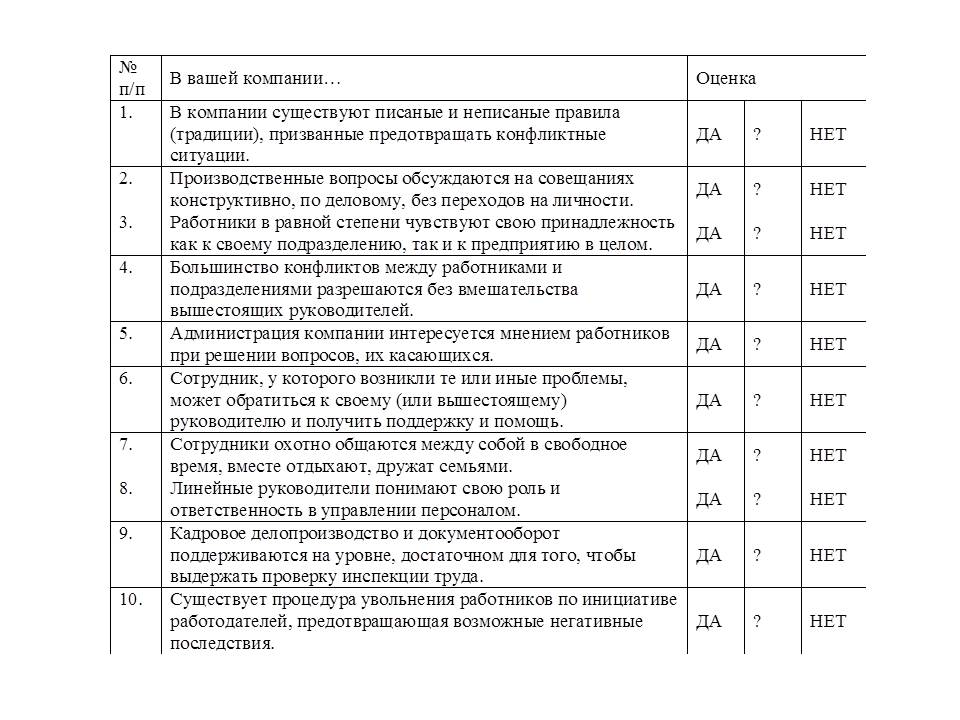 Прежде чем начать любые действия по укреплению конфликтоустойчивости компании, HR необходимо провести диагностику сложившейся ситуации и ответить себе на следующие вопросы: