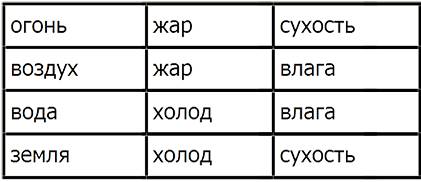 Рис.2 Первоначальные качества и стихии