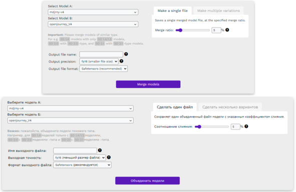 Из своего опыта скажу, что в объединении моделей особой необходимости нет. Но, если вы пользуетесь двумя десятками разных моделей, возможно, вам пригодится данная функциональная возможность приложения Easy Diffusion для объединения по нужным тематикам или стилям.