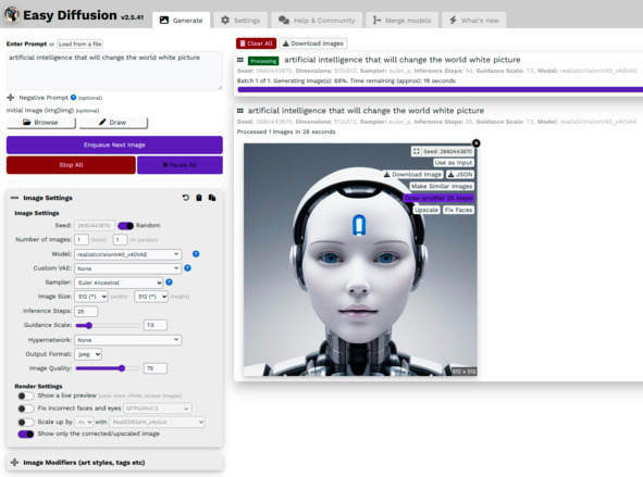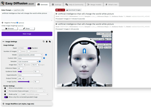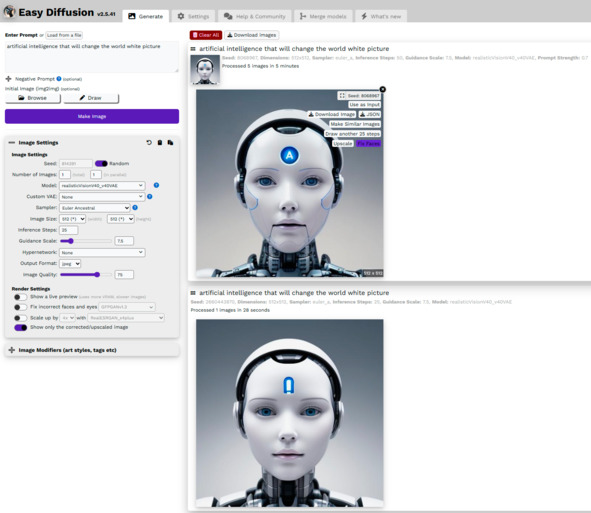 Связано это с тем, что система Easy Diffusion каждый раз будет интерпретировать фразу «Artificial intelligence cyborg» как ей захочется, по причине того что наша ключевая фраза очень простая и носит общий характер, а также требует дополнительных уточнений.