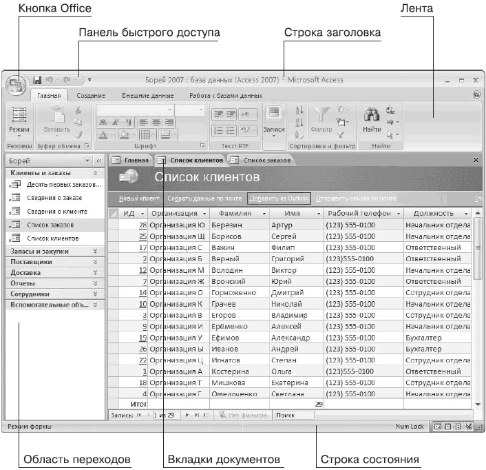 Рис. 1.5. Главное окно Microsoft Access 2007