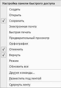 Рис. 1.6. Меню Настройка панели быстрого доступа