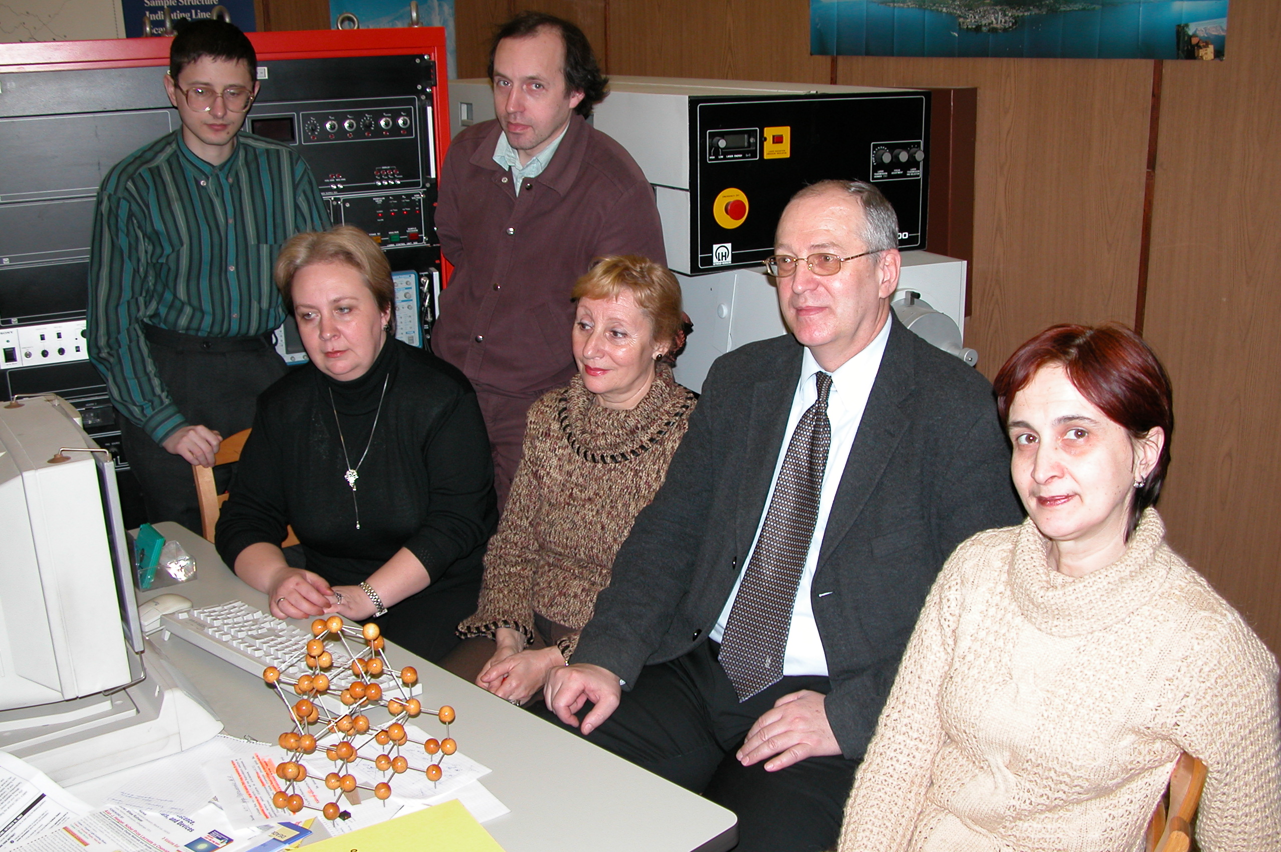 На снимке Лена Скрылёва справа, рядом с завкафедрой, с другой стороны от него две дамы, занимавшиеся параллельно и научной работой (измерениями на вторично-ионном масс-спектрометре), и административной, я сзади всех, слева и тоже сзади аспирант Иржак, как наименее значимые сотрудники кафедры.