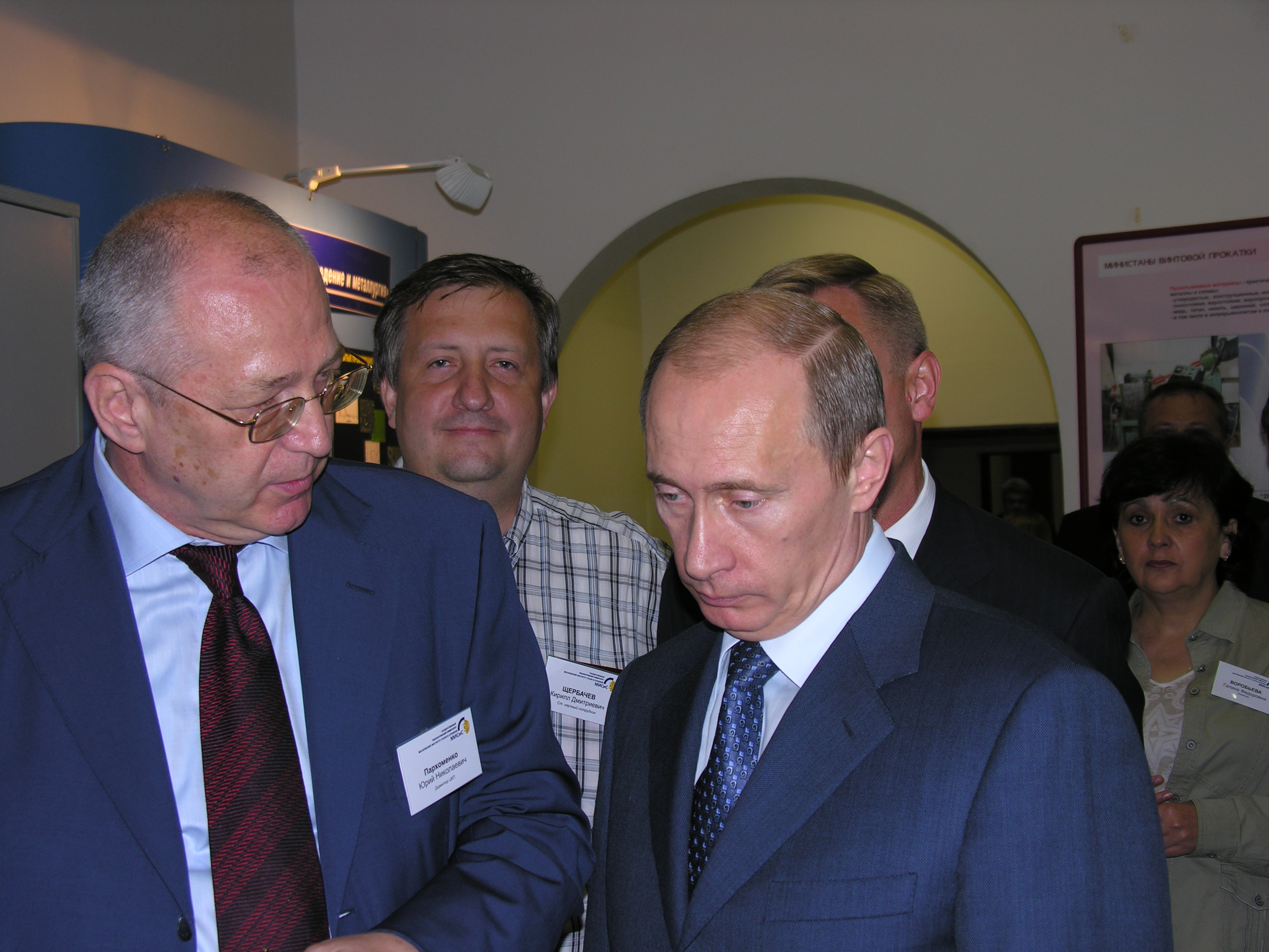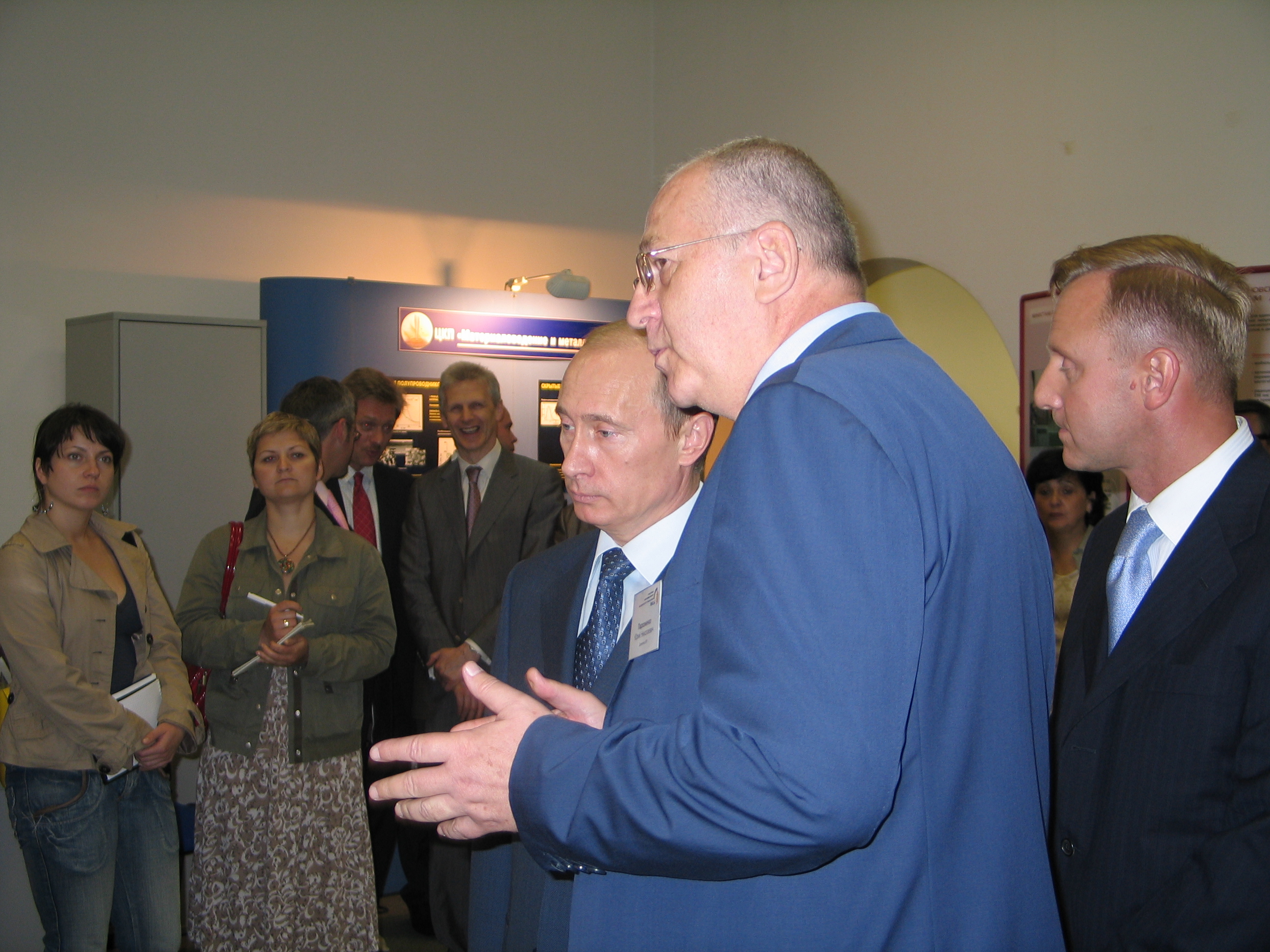 Один раз к Ливанову в МИСиС приехал Путин. По слухам, чтобы продемонстрировать свою поддержку. Я его не видел, он посетил основное здание, оно поновее нашего старого лабораторного корпуса. И приборы там стоят в специально организованной большой комнате, это т.н. межинститутский измерительный центр. Но мне рассказали и показали фотки. Сотрудникам центра фотографировать почему-то не запретили. Сперва, кажется, за день, пришли охранники и велели убрать из комнаты все баллоны, независимо от того, что там за газ, опасный кислород или безобидный аргон. На возражение, что тогда не удастся продемонстрировать работу некоторых приборов заметили, что можно эти приборы как-нибудь вхолостую включить, ну или просто объяснить, что тут на экране будет, если включить. Очевидно, это был не первый визит в научное учреждение.