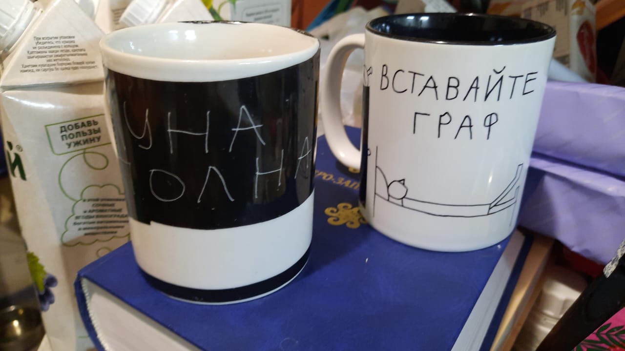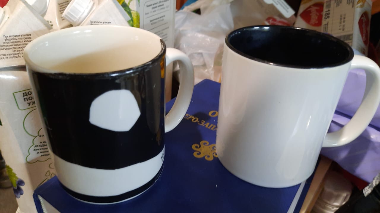 К сожалению, самого процесса работы гончарной мастерской я ни разу не наблюдал. Только готовую продукцию на полочках. Кстати, у них был и гончарный круг. Но, кажется, много вазочек они делали, облепляя глиной какой-нибудь дешёвый стакан или банку, чтобы не возиться с основой. Всё же дети с нарушениями, вероятно, не имеют обычно такой уж хорошей координации движений. Кстати, как мне объясняли, это всё связано. В частности, очень нужно развивать мелкую моторику, т.е. как можно более сложные движения пальцами, чтобы навести порядок в мозгах. Тут я вспомнил, что читал: какие-то гипотезы о происхождении человека от обезьяны большое значение придавали развитию руки. Не самой по себе, а именно в связи с развитием мышления… Да, так гончарная мастерская, стаканы в основе изделий. Более того, часть своей продукции они только расписывали, например, кружки брали за основу простые, белые, и что-то на них рисовали и надписи делали. Например, «ЛУНА ПОЛНА» – и рисунок полной луны, слегка кривоватый, как и печатные буквы. Ну и обжигали в печке, чтобы не смывалось. То есть это тоже относится к керамике, хоть и не изготовление самой кружки.