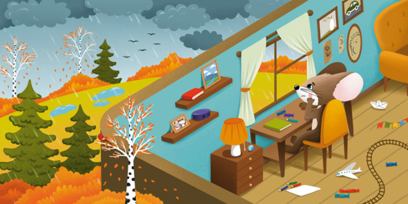 Небольшое оконце комнаты мышонка, было плотно закрыто. Занавески же наоборот- одернуты до предела, как будто бы для того, чтобы пригласить в гости, редкое, осеннее солнышко.