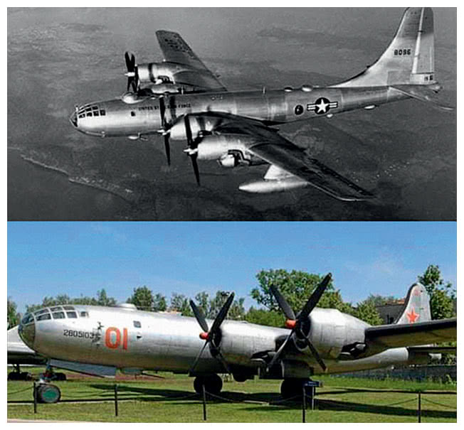 Для создания нового самолета 6 июня 1945 года принимается решение скопировать американский бомбардировщик Б-29. Работу ведёт ОКБ А. Н. Туполева. Использованные при создании американского самолета типы конструкционных материалов и технологические решения оказываются новыми для отечественных специалистов. В результате напряженной работы 19 мая 1947 года в воздух поднимается первый самолет модели Ту-4, который впоследствии запускается в серийное производство. К 1952 году произведено 847 самолетов.