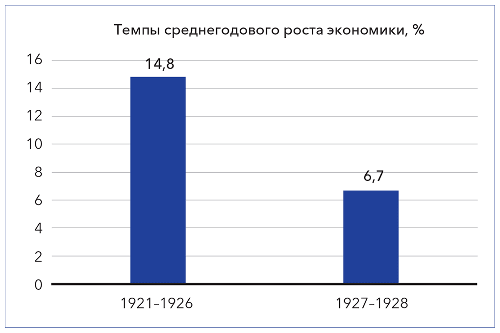 В период 1921–1928 годов среднегодовой рост экономики составляет 12,7 %.