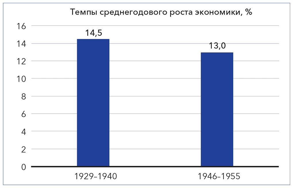 Рис. 4. Темпы роста экономики в период с 1929 по 1955 г. (за исключением периода Великой Отечественной войны 1941–1945 гг.)