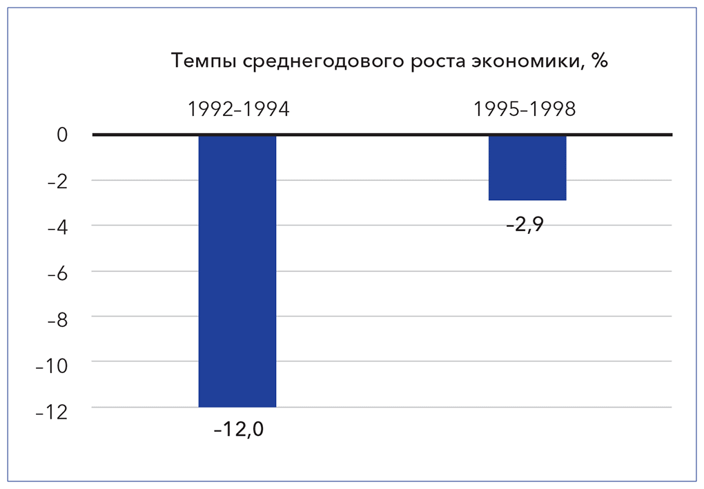 Рис. 6. Темпы падения экономики в период с 1992 по 1998 г.