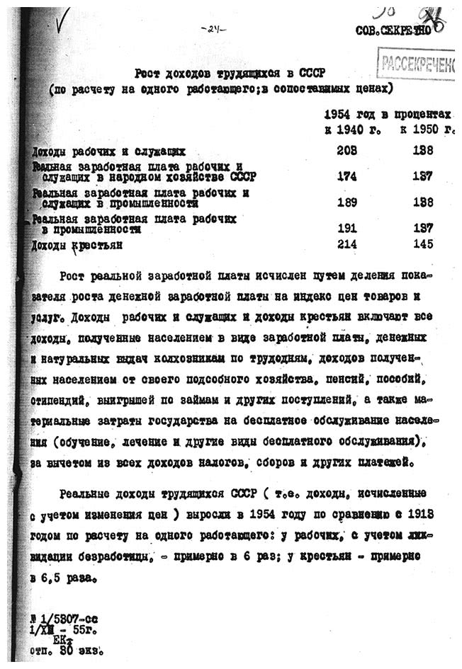 Таким образом, совокупно среднегодовое количество граждан, единовременно находящихся в системе подневольного труда, составляет 2,926 млн человек в год, в том числе заключенных – 1,426 млн человек и спецпоселенцев – 1,5 млн человек. Среднегодовая численность населения нашей страны в рассматриваемый период 1929-1955 годов составляет 177 млн человек. Таким образом, средняя доля всех граждан, единовременно находящихся в системе подневольного труда, включая заключенных и спецпоселенцев, от общей численности населения страны составляет в среднем 1,65 %.