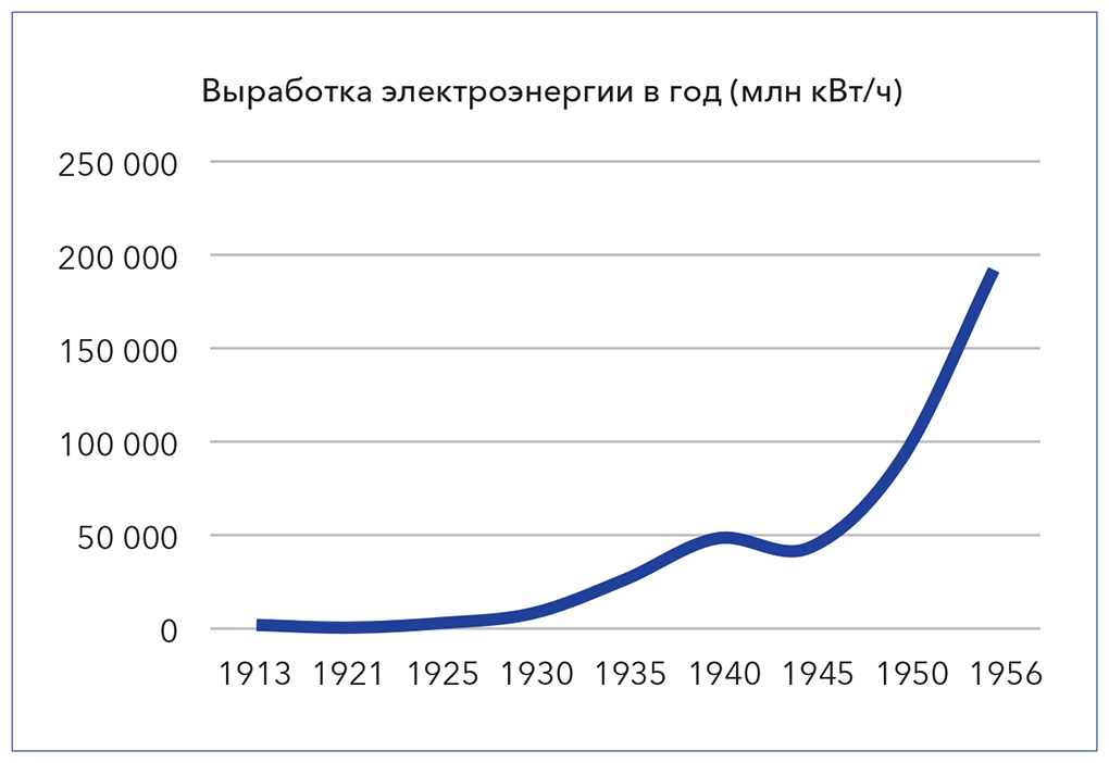 Рис. 13. Рост ежегодного производства электроэнергии (млн кВт/ч)