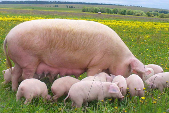 Свинья. Все специалисты сходятся во мнении, что предком домашней свиньи был дикий кабан, настолько схожим является внешний вид этих животных. Археологические памятники возрастом тысячелетней давности (ископаемые останки, настенные рисунки) не сохранили значительных различий в морфологии дикого кабана и хрюшки, хотя это далеко не идентичные животные, если судить по многообразию современных пород.
