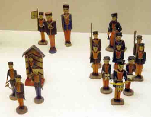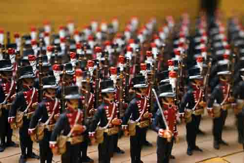 К концу XVIII века оловянные солдатики становятся достаточно недорогими и из них начинают создавать целые армии. Оловянная армия была практически в любой дворянской семье. Свои солдатики были у Наполеона, Суворова и Кутузова. Самые дорогие фигурки коллекционировали европейские монархи. Коллекции миниатюрной артиллерии с оловянными артиллеристами были в детстве у будущих российских императоров – Петра I, Павла I, Николая I и других, причём, изготавливались они лучшими мастерами. К примеру, часть игрушечных солдатиков Николая II была изготовлена на ювелирной фабрике Карла Фаберже. Такие фигурки как на иллюстрации приобретались уже как часть украшения интерьера.