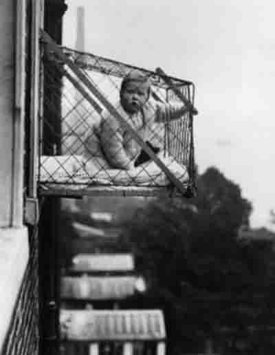Взгляды на то, в каких условиях должны расти дети, в разных странах весьма различались. К примеру, в Англии считалось нормальным одевать детей легче, чем взрослых, и ограничивать их в еде. Самым же полезным (и небезосновательно) считали пребывание на свежем воздухе, но, поскольку прогулки могли осуществляться только под присмотром взрослых, англичане придумали оригинальный выход, к примеру, в 30-х годах можно было встретить вот такие детские «балкончики».