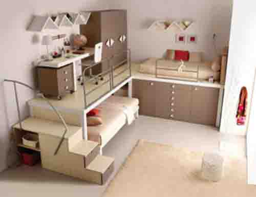 Большое распространение получили двухъярусные кровати. Примечательно, что если такие кровати первоначально использовались для того, чтобы решить проблему нехватки пространства, то позднее они стали типичным элементом и в весьма просторных помещениях для одного ребёнка, поскольку многим детям нравится спать наверху. Постепенно двухъярусная кровать стала модной и дизайнеры разработали великое множество вариантов.