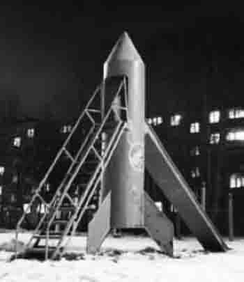 С началом эпохи покорения космоса началось массовое сооружение горок стилизованных под ракету в самых различных вариациях.