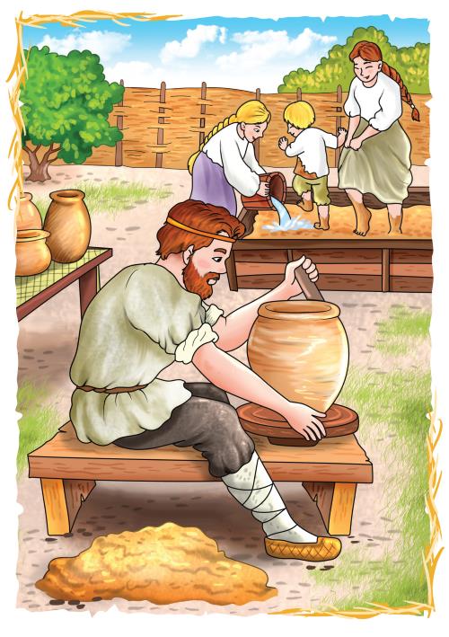 Топтали глину не в гончарне, во дворе. Ведомо, чем долее глина мокнет, тем податливей, тем лучше лепка. Потому заготавливали её в самом начале лета, едва подсыхали дороги. Наметив новый копанец, копать глину, возить домой, гончар снарядил старших сыновей – семнадцатилетнего Рознега и четырнадцатилетнего Завида. Обе дочери и младший сынишка топтали глину. Меньшак забавлялся, вывалявшись по уши в глине, бегая на четвереньках, взлаивал и пытался куснуть сестёр за ноги. Всем находилась работа. Жена ворчала: одной и по дому, и с коровой, и с огородом. Муж на сетования жены не обращал внимания, пока не заполнился опустевший зимний глинник, дочерей в помощь матери не отпускал. Глина должна дойти, а это скоро не бывает. Навозят глины, отправит сыновей на заготовку дров, там и сенокос подойдёт. Ему за всем не поспеть, пусть трудятся. Осенью наметились две свадьбы. Рознег женится, Веснянка замуж идёт. Успевай, поворачивайся, готовься к тратам немалым.