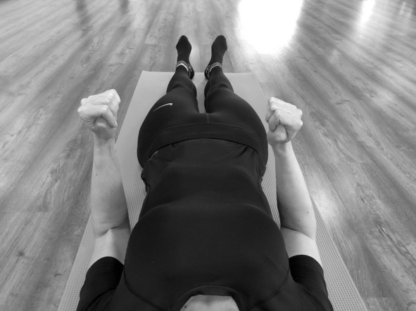 Исходное положение: лёжа на спине, руки поставлены на локти, предплечья перпендикулярны кровати, пальцы сложены в кулаки.