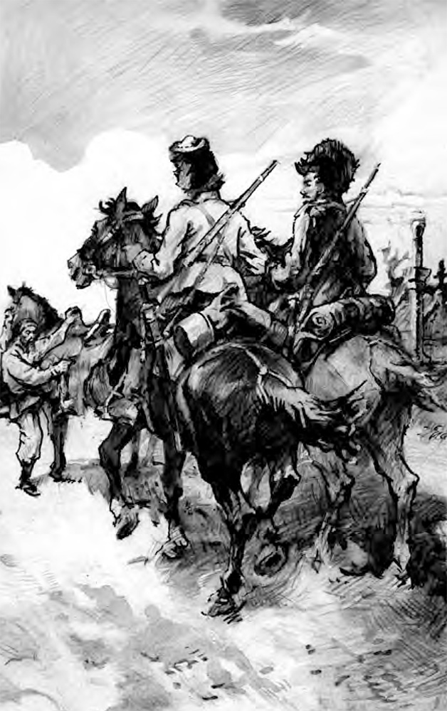 – Никак, Зинченко, эт-то мы опять задарма проплутаем! – поправляя лихо сдвинутую набекрень папаху, проговорил один из казаков. – Отто жисть! Сидеть бы теперь в импани да хлебать шти куда беспримерно как лучше было бы.