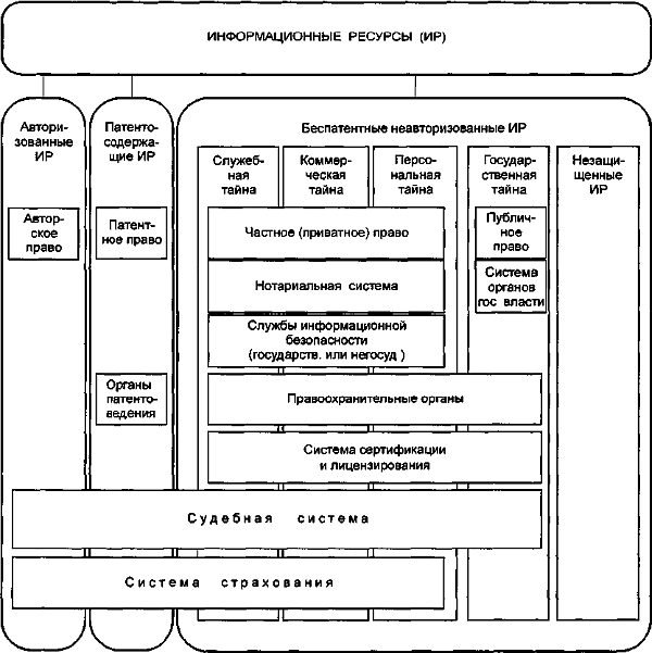В зависимости от типа защищаемых информационных ресурсов система обеспечения информационной безопасности должна создаваться на соответствующих правовых и организационных основах (рис. 1.).