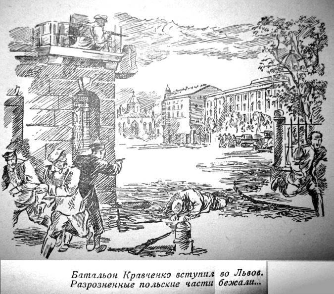 Начался знаменитый освободительный марш Красной Армии. День и ночь двигались вперед части Красной Армии, освобождая Западную Украину. Батальон Кравченко шел в авангарде. Двигались по бездорожью, без сна, без отдыха. Преодолев небольшое сопротивление противника, вступили в Тарнополь. Подавили предательский огонь из домов и костелов и без отдыха двинулись дальше, на Львов.