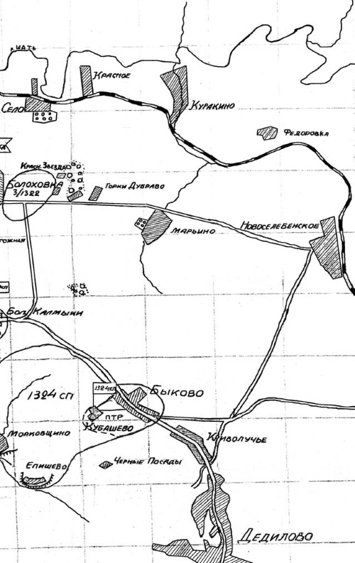 8. 50 А. на Болоховском и Дедиловском направлении, после мощной арт. подготовки противник в 8.30 перешел в наступление и занял Дубовка, Демидовка, Марковщино, южную часть Дедилово, развивая наступление к 15.00 овладел Сергиевское, Трушино, Быково и северной частью Дедилова.