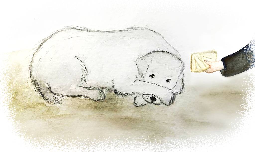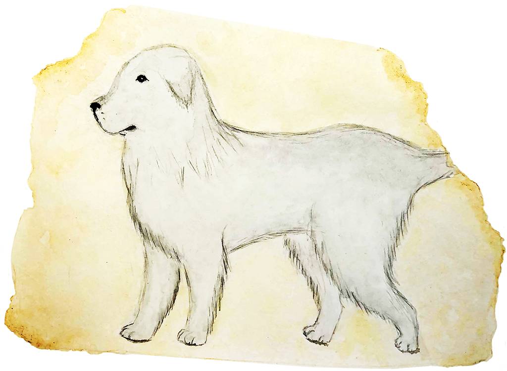 Дед пошел прогуляться вдоль реки, а Май остался на месте и пристально разглядывал своего нового и единственного друга. Это был большой статный пёс, с шерстью средней длины, с большой сильной мордой и опущенными ушами, крупными сильными лапами. Угол бумажки, где располагался его хвост, был оторван, поэтому хвост был очень короткий и не пушистый, мальчик думал, что так и должно быть. Изображение было немного выцветшим, поэтому шерсть была бело-серой. Май сам не понимал, почему это животное так привлекло его внимание, но одно он знал точно, что больше всего в жизни он хотел бы иметь такого друга и заботиться о нем.