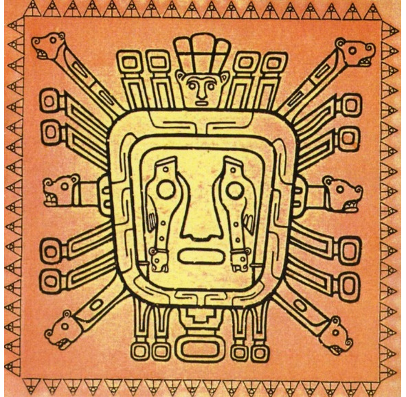 Круглый календарь инков, показанный на рис. 80, это, прежде всего, гражданский календарь. У него по внешнему контуру 18 ячеек меандра, следовательно 18 х 20 = 360 дней. Скорее всего, это художественная интерпретация древнего календаря. Внутри много знакомых нам рисунков ягуаров и кондоров, являющихся основой оригинального календаря Тиуанако.