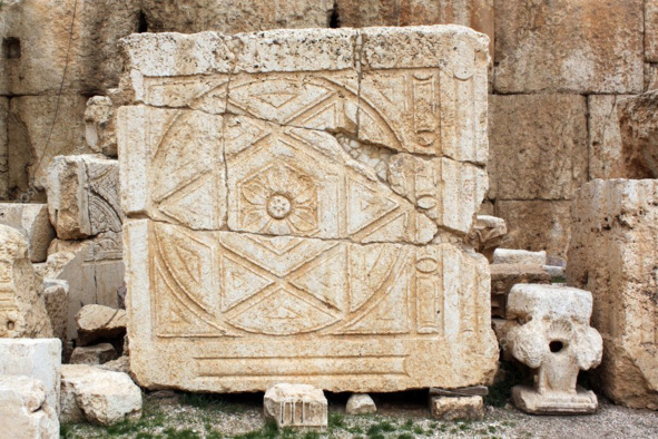 Есть немало барельефов и плит с рисунками в Баальбеке, назначение которых не совсем понятны, но один из возможных мотивов создания – увековечить знания древних создателей, в том числе и по части левитации. Так, на рис. 24 и рис. 25 показаны блоки из храма в Баальбеке, на которых в центре изображены четырёхугольные и шестиугольные фигуры, а также окружающие лепестки «воздействия». Автор не берется сказать однозначно об их назначении, но привел их здесь не случайно для осмысливания читателю.