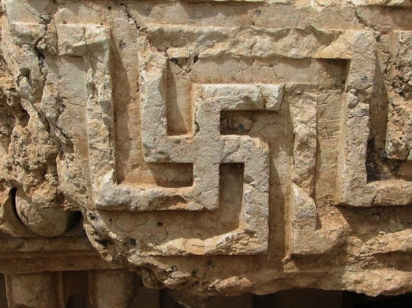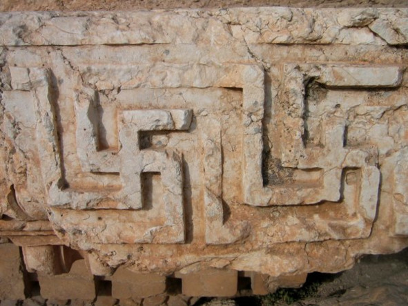 Храм Юпитера в Баальбеке (II век). На рис. 26 показан барельеф со свастикой. Название «свастика» происходит от индоевропейского su – «связанное с благом». Правосторонняя свастика – солярный знак, символ света и щедрости, который встречается у многих народов Евразии и Северной Африки; левосторонняя свастика – лунный символ, несущий несчастья. В Римской и Византийской империях свастика называлась «гаммированным крестом».
