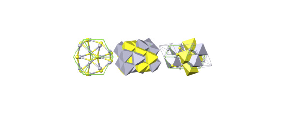 Кристаллическая структура киновари: желтый – сера, серый – ртуть, зеленый – клетка – рис. 10.