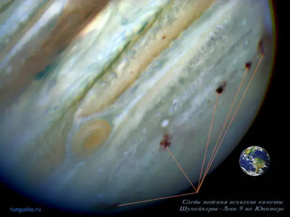 Рис.2. Следы падения осколков на Юпитере [111]