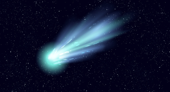 Кометы движутся по вытянутым эллиптическим орбитам. Обратите внимание на два различных хвоста. Кометы, прибывающие из глубин космоса, выглядят как туманные объекты, за которыми тянется хвост, иногда достигающий в длину нескольких миллионов километров. Ядро кометы представляет собой тело из твёрдых частиц, окутанное туманной оболочкой, которая называется комой. Ядро диаметром в несколько километров может иметь вокруг себя кому в 80 тыс. км в поперечнике. Потоки солнечных лучей выбивают частицы газа из комы и отбрасывают их назад, вытягивая в длинный дымчатый хвост, который движется за ней в пространстве. Кометы это большие космические объекты, состоящие из замороженных газов, камней и пыли, которые вместе с остальными небесными телами Солнечной системы вращаются вокруг звезды. Они образовались после сложных процессов, во время которых зарождались планеты и Солнце. В своем изначальном состоянии кометы довольно крупны и могут быть размером с целые города. Но в процессе их жизненного цикла, когда они находятся на орбите Солнца, кометы постепенно нагреваются по мере приближения к источнику тепла, теряя тем самым свою массу [69]. Солнце мало того, что нагревает их, оно еще и притягивает частицы, из-за чего и появляются огромные хвосты, простирающиеся на многие миллионы километров, озаряя темноту космоса. То, что удерживает комету в движении и направляет ее путь, это гравитация со всех планет и звезд, вблизи которых она проходит. Когда комета приближается к Солнцу, она движется все быстрее и быстрее, потому что чем ближе объект к источнику гравитации, тем сильнее она на него действует. Хвост кометы не только будет быстрее двигаться, но еще становиться длиннее, так как большее количество веществ будет испаряться. Благодаря своему внешнему виду и хвосту, кометы и получили свое название, ведь с древнего греческого переводится «хвостатый», «волосатый», «косматый». Интересный факт: хвост кометы всегда будет направлен в одну сторону. Воображение может рисовать эти тела с хвостами, направленными в противоположную движению сторону. Но на самом деле он будет всегда будет направлен от Солнца.