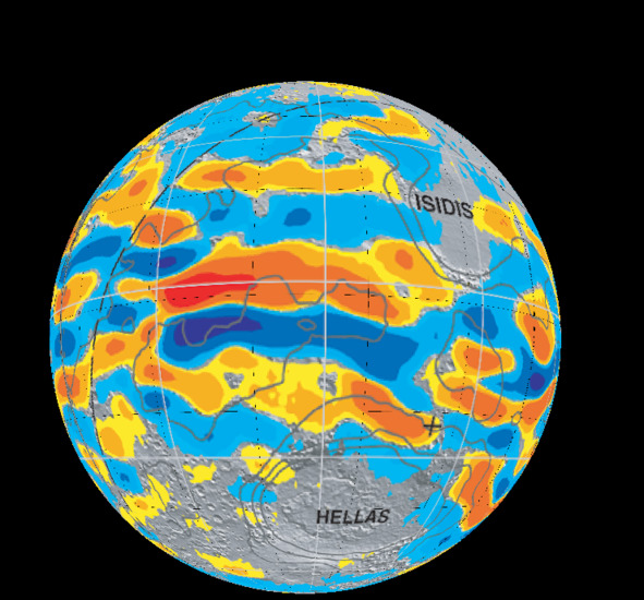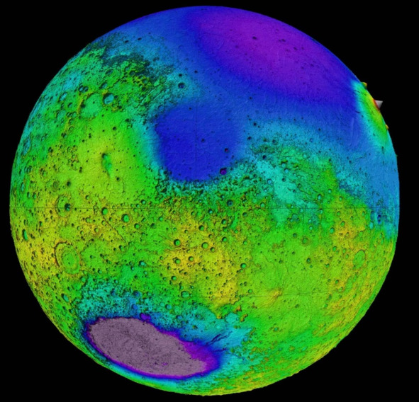 Рис. 6. Огромный фиолетовый круг в южном полушарии Марса, это ударный кратер от падения очень массивного небесного тела [113]