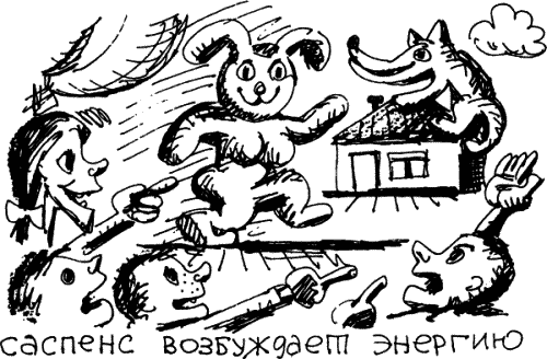 Герой в саспенсе действует по «принципу охоты». Он догоняет или убегает. Если догоняет, у него, как у борзой, работает одна извилина – догнать. Если убегает, действует другая, но тоже одинокая извилина – спастись от волка.