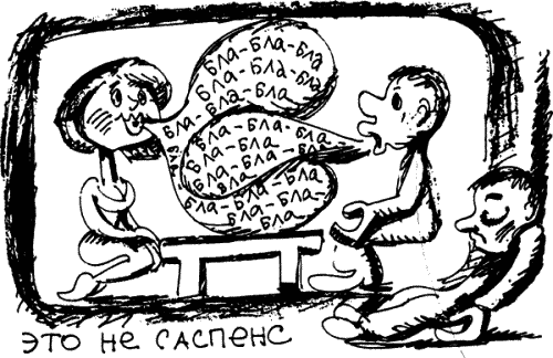 Саспенс – это что-то вроде экзамена, который выдерживают перед зрителями конструктивные элементы структуры. Если драматическая ситуация хороша, она порождает саспенс. Если драматическая перипетия развита правильно – вы получите все, что хотели, плюс саспенс в развитии. Если событие правильно вскрыло конфликт, саспенс будет расти вместе с угрозой герою и неожиданными поворотами действия.