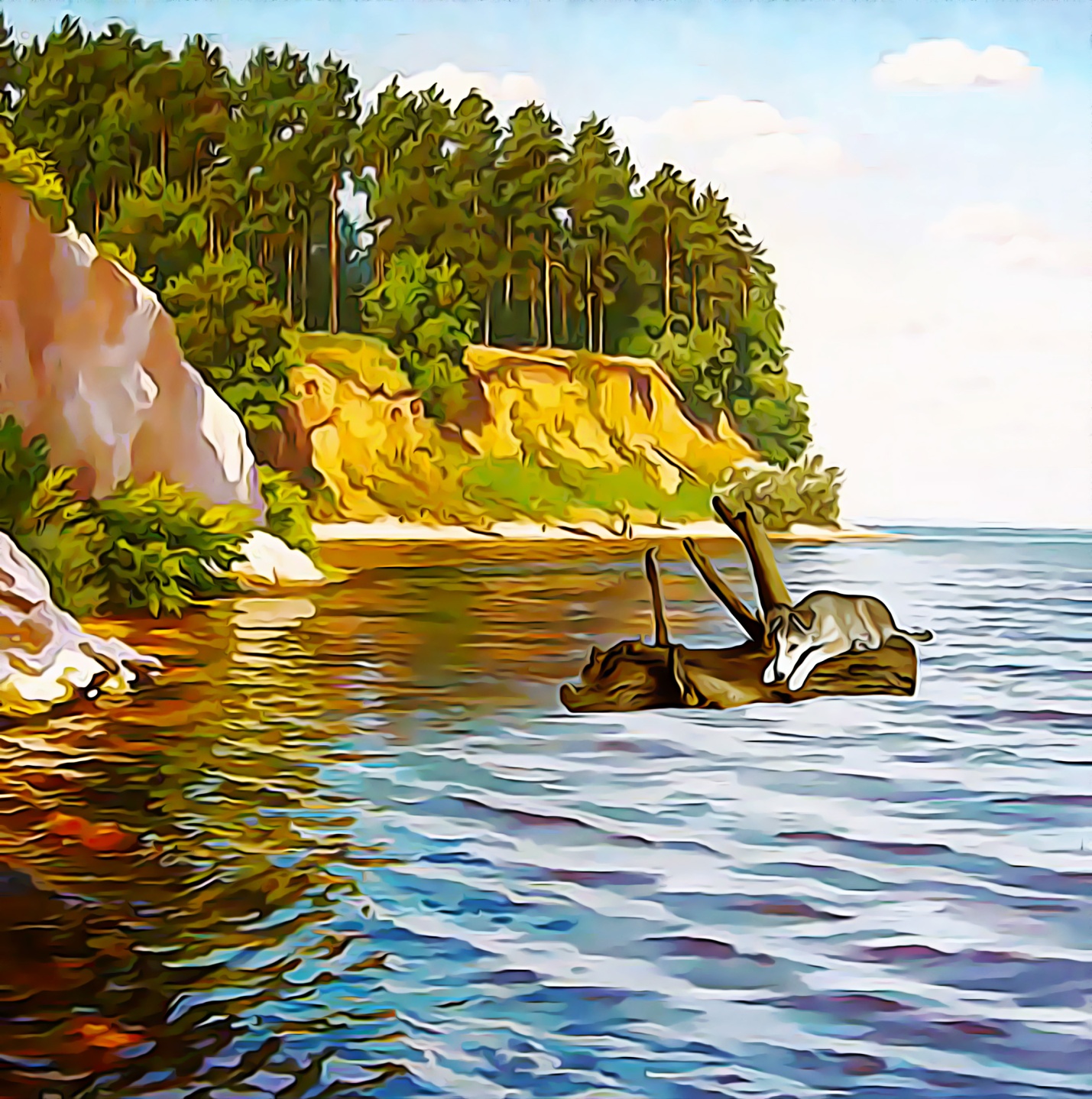 Никита всё же перемог страх, скоренько догнал ветку и меня с ней, а я реву, с жизнью прощаюсь. Прижал он меня к груди – я дрожу всем тельцем, тычусь мокрой мордахой. Кое-как всё же доплыли до берега. К счастью, сразу перед перекатом под обрывом пологий бережок начинался. На него и выбрались. А там уж и Егорка помог нам на травку вылезти.