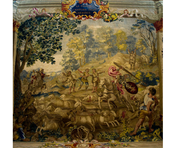 Шпалера «Дон Кихот сражается со стадом овец» из серии «Истории Дон Кихота». Мадрид, Шпалерная мануфактура Франсиска ван дер Готена (1727—1746). Из собраний Государственного ЭрмитажаО! Здесь не надо сомневаться.Да не безумен ли герой?Зачем же за копье хвататься,Овец увидев пред собой?Его смешные объясненьяНе вразумили пастухов.Тогда к чему же рассужденья?Но есть ответ. И он таков.Когда у Высшего НачалаРодился замысел Земли,Оно законы нам создало,Чтоб мы любить и жить могли.И вот Начала воплощеньеЯвилось в мир как Дон Кихот.Но Бог увидел с изумленьем,Что здесь ЗАКОН наоборот.Там, где должно быть благородство,Тьма низких истин, пустота.Невероятное уродствоИ вдрызг разбитая мечта.Он благородные названьяПринес, как рыцарь, в эту жизнь.Но несмотря на все старанья,Не смог нигде их применить.В итоге – приговор безумства.Им ныне полон интернет.А вам от этого не грустно?Иль Дон Кихотов больше нет?